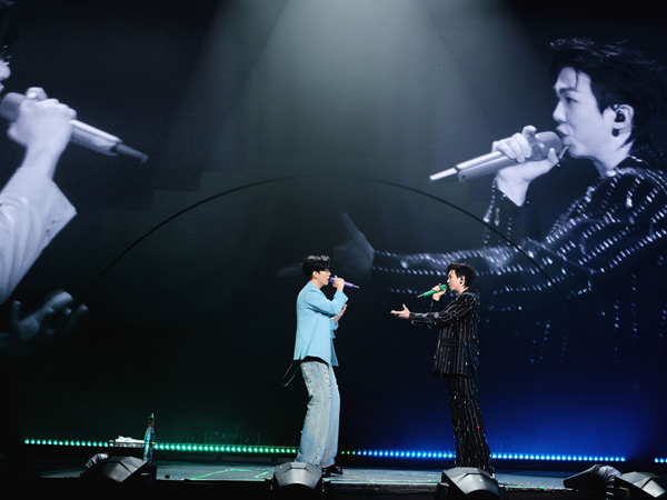 好友白舉綱作為當(dāng)晚驚喜嘉賓登臺,二人首度合作演繹歌曲《一指間的距離》。在演繹《呆若木魚》這首歌時,胡夏在臺上幽默“抱怨”被白舉綱安排敲木魚的工作,白舉綱笑稱“每敲一下都是在為現(xiàn)場觀眾積功德”,兩人你來我往的對話逗趣自然,展現(xiàn)出好友間的默契與輕松氛圍。