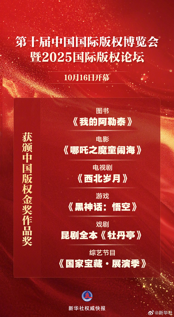 當哪吒的火尖槍照亮銀幕,當悟空的金箍棒敲開游戲世界的大門,當阿勒泰的文字與牡丹亭的昆曲跨越時空相遇,這場版權金獎的頒獎,既是對過往創作的肯定,更是對未來的期許。這些作品的成功證明:好的版權從來不是“一錘子買賣”,而是“內容生命力的持續生長”——這或許就是中國文化IP走向世界的真正底氣。