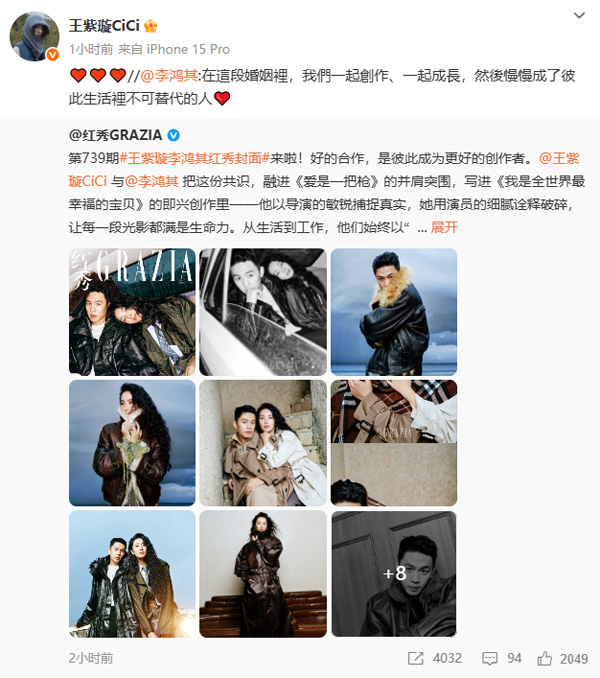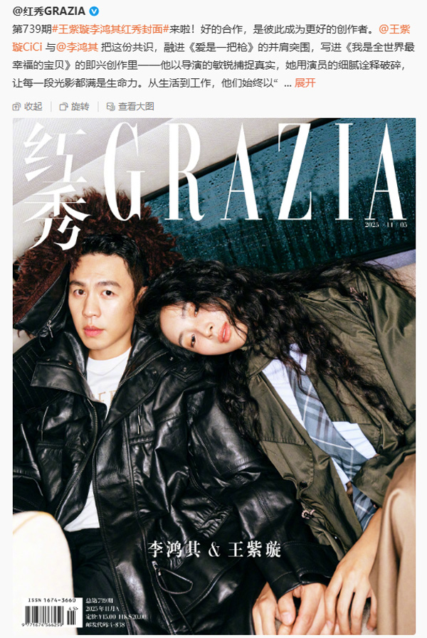 亞洲明星網(wǎng)www.ph15800.com “在這段婚姻里,我們一起創(chuàng)作、一起成長(zhǎng),然后慢慢成了彼此生活里不可替代的人。”11月3日,李鴻其通過(guò)社交媒體宣布與王紫璇已婚的喜訊,并附上兩人共同登封的《紅秀GRAZIA》封面大片。